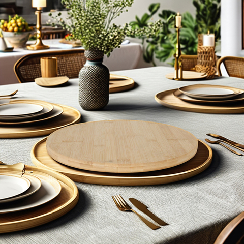 ถาดไม้ไผ่ไผ่สำหรับเสิร์ฟแบบหมุนได้จานหมุนได้สำหรับใช้ในชีวิตประจำวัน