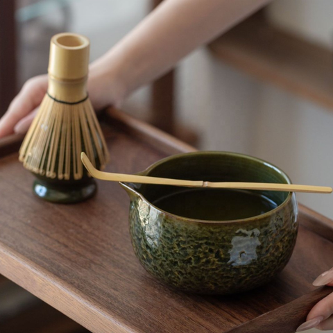 Takayama เซตหม้อมัทฉะทำจากเซรามิกสีม่วง conjunto espatula และ Chasen สำหรับพิธีชงชาแบบดั้งเดิมของญี่ปุ่น